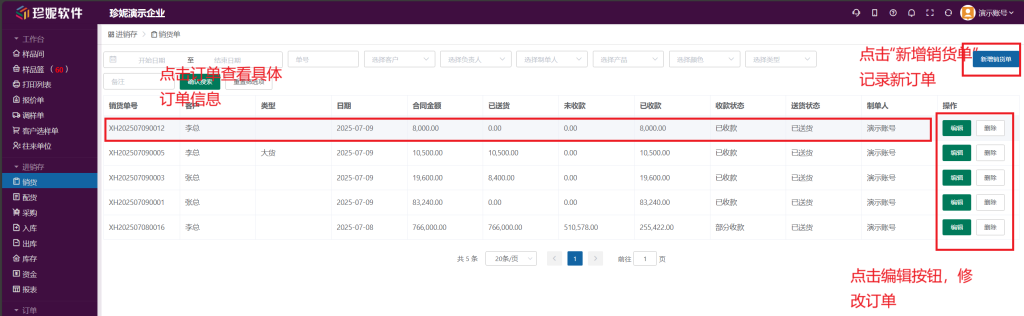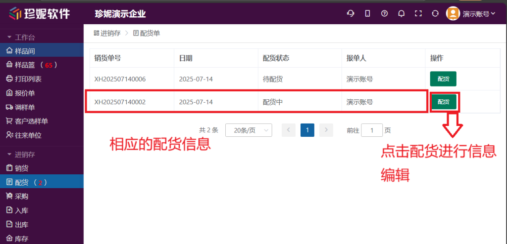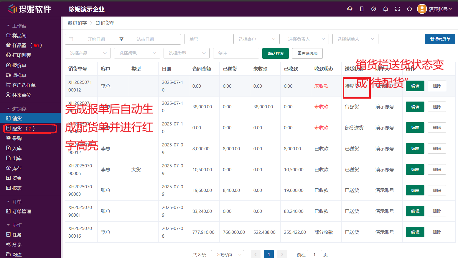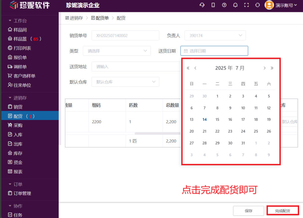 - 完成配货:配货人员编辑配货单日期并确认完成