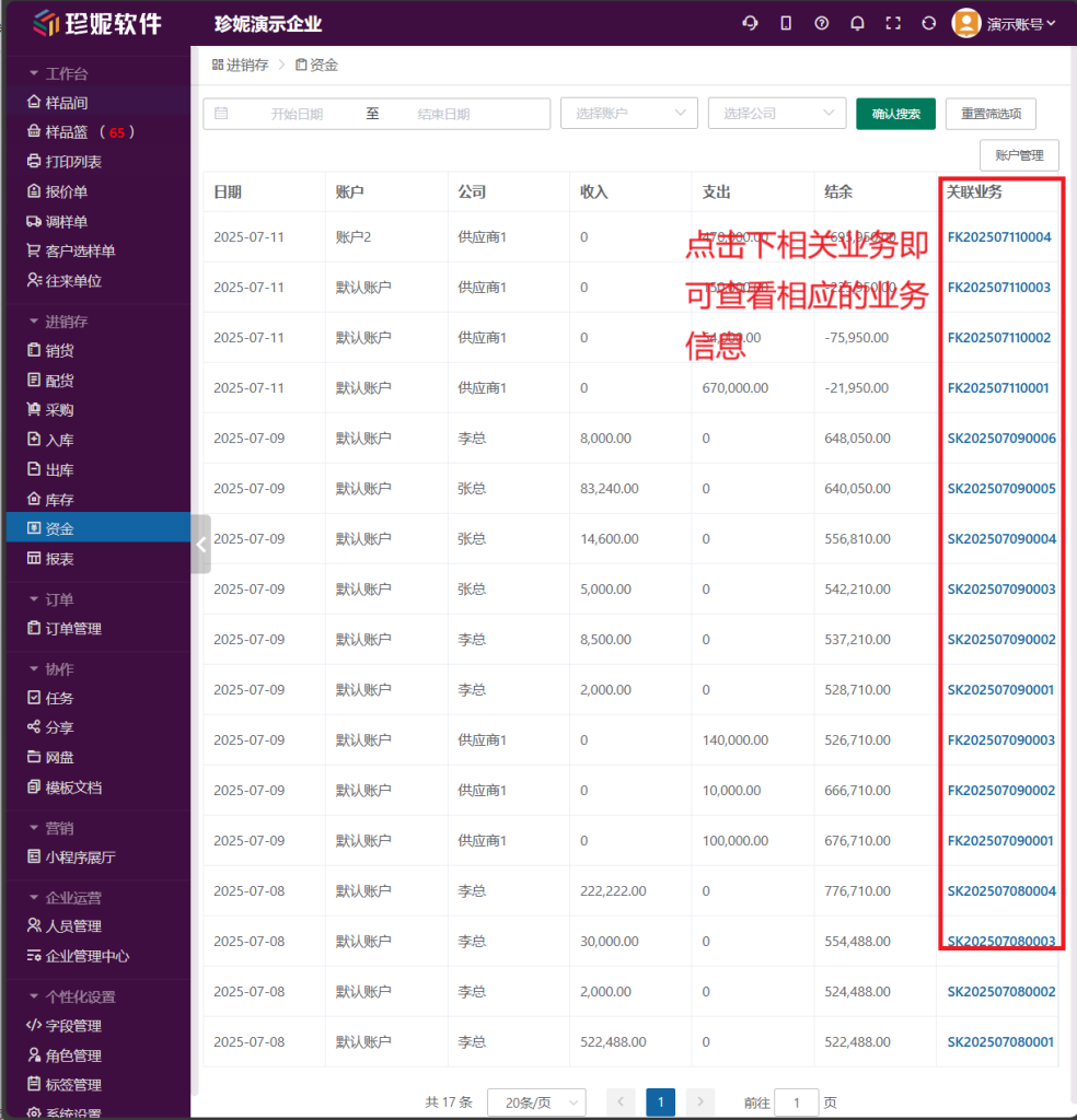 核心作用:统一管理采购付款、销售收款流水,支持财务修正。
